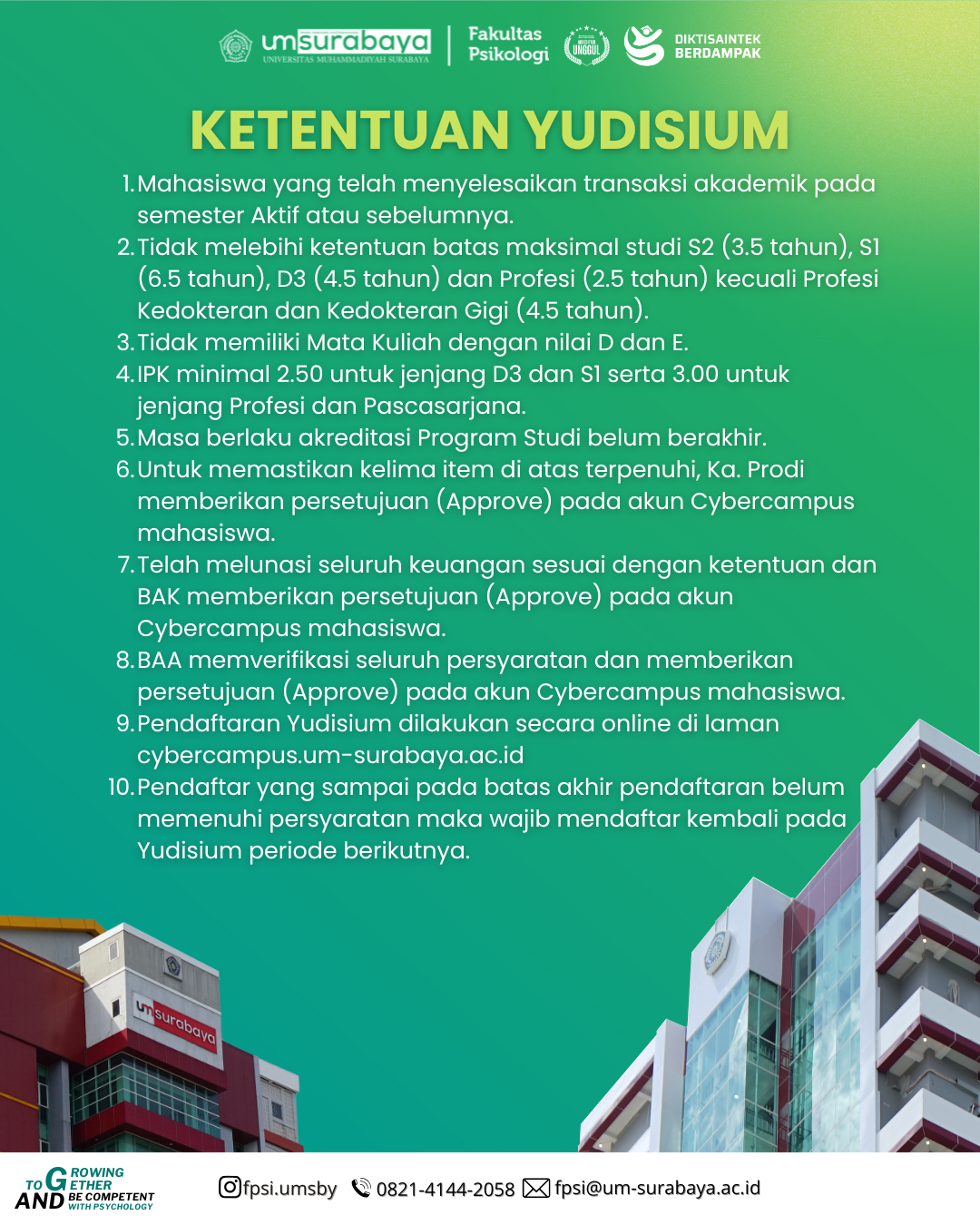 Berikut kami sampaikan Informasi Pendaftaran Yudisium Semester Gasal 2025/2026 Tahap 1.